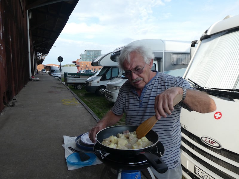 Zum Fisch gibt es Pellkartoffeln, Salat und einen kühlen Rosé. Was für ein Genuss. Nach der Völlerei wollen, nein, müssen wir uns noch etwas bewegen.