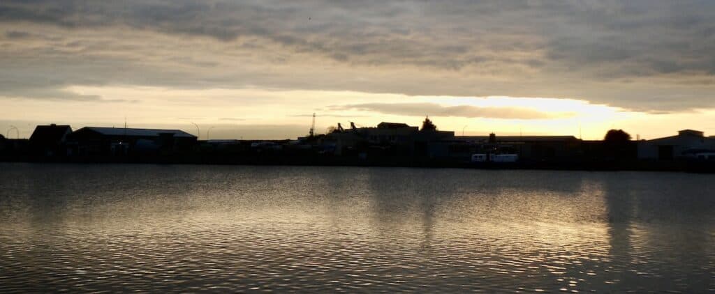 Alle sehen wir von hieraus den Abendhimmel viel besser als bei der Doppelschleuse hinter dem Deich.