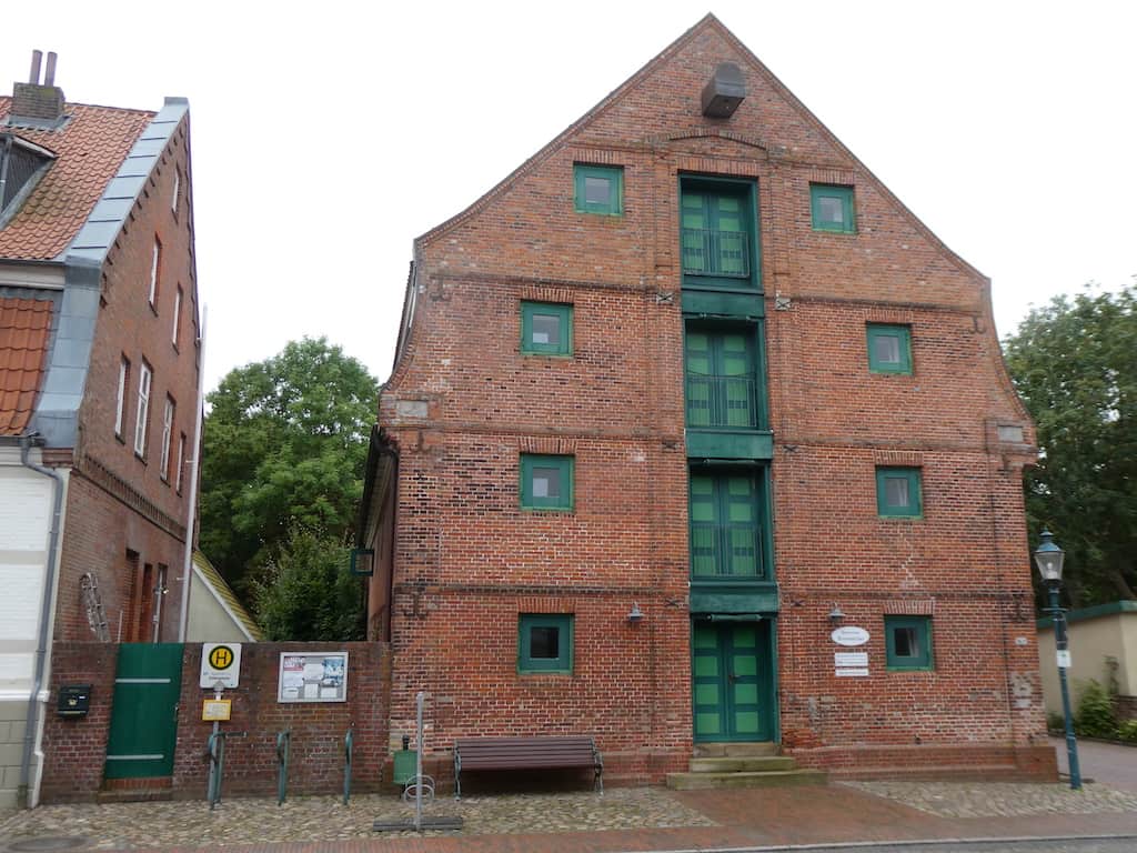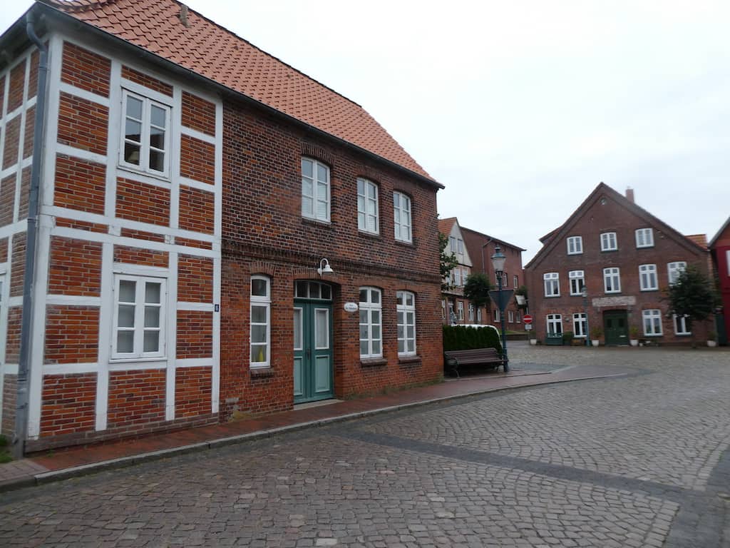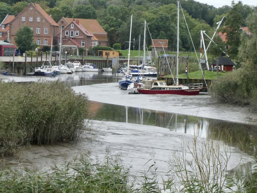 Vor Neuhaus sehen wir schon von Weitem den alten Hafen in einem Seitenarm der Oste. Wir schauen uns den Ort etwas näher an. Bei Ebbe liegen die meisten Boote im Schlick. Der Tidenhub beträgt hier ± 2 Meter.