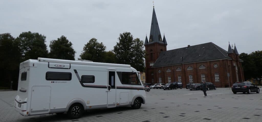 Unsere Fahrt geht weiter nach Cuxhaven. Auf dem riesigen Parkplatz bei der Kirche stehen wir fast alleine.