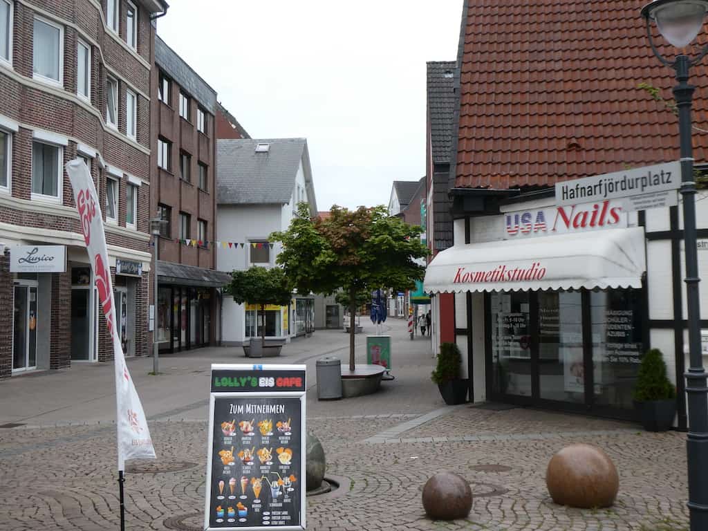 Nach wenigen Schritten sind wir in der Fussgängerzone. Hier ist am Sonntag nicht viel los. Sind die Leute alle in der Kirche?