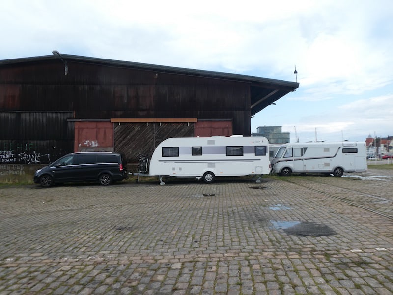 Der Regen hört zum Glück gerade auf, als Tobias und Familie mit ihrem Wohnwagen Gespann eintreffen.