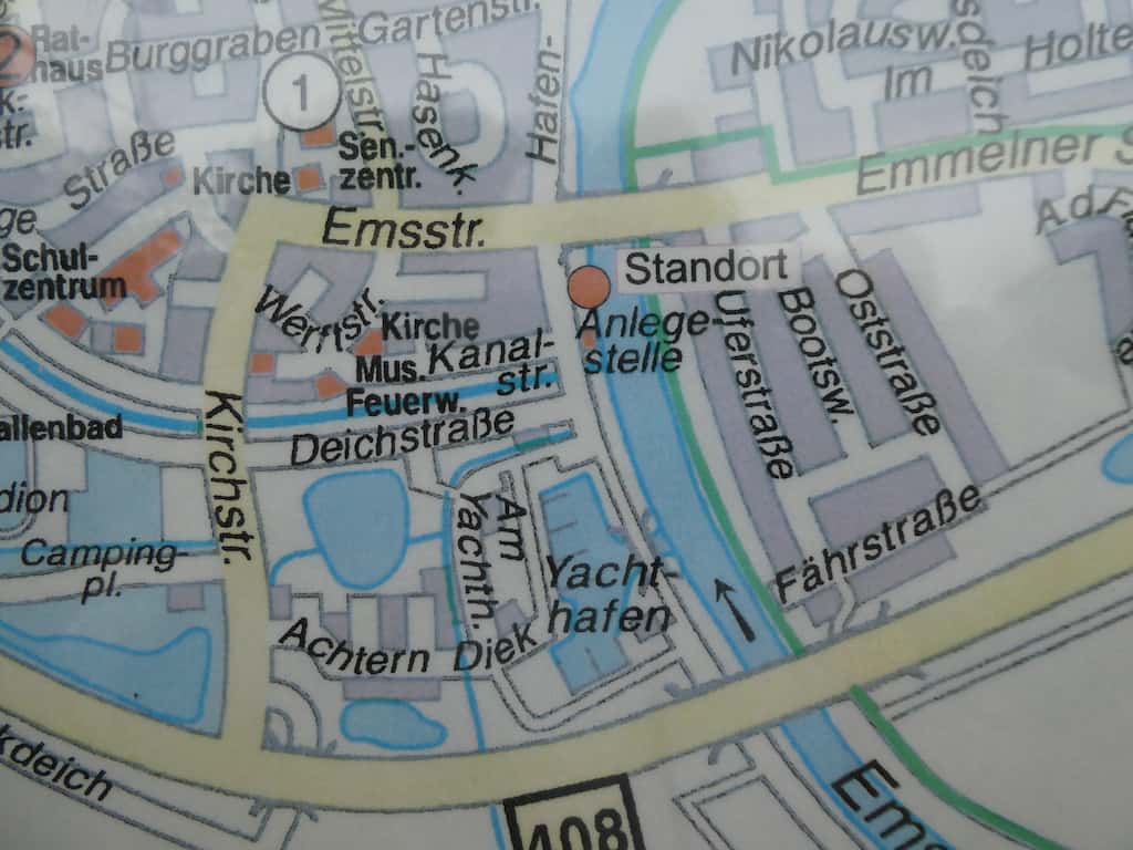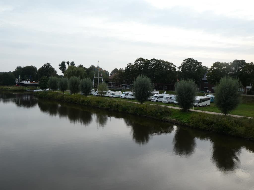 Vorbei an riesigen Kartoffelfeldern fahren wir die letzten Kilometer nach Haren an der Ems, wo ein gut bewerteter Stellplatz «Achteren Diek» ausgewiesen ist. Was wir nicht beachtet hatten: er hat nur 3 Plätze und die sind schon gelegt. Der sehr freundliche Betreiber verweist uns auf einen zweiten Platz an der Ems.