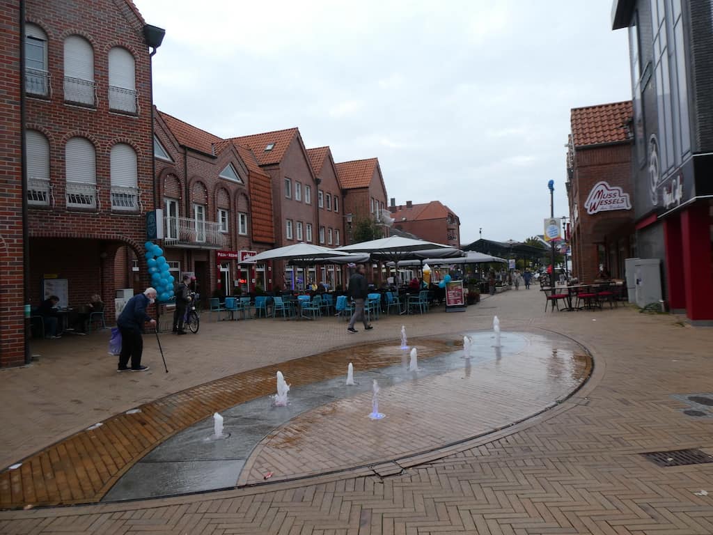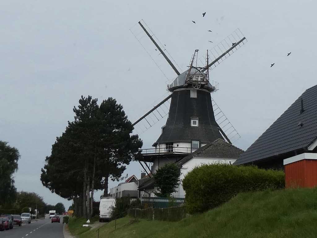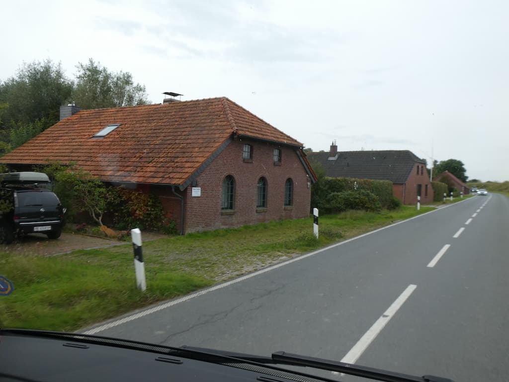 Wir fahren die Küstenstrasse im Hallingerland entlang, wo all’ diese ostfriesischen Inseln, wie Borkum, Juist, Norderney, Langeoog, Spiekeroog und Wangerooge vorgelagert in der Nordsee liegen. Allerdings sehen wir davon hinter dem Deich nicht viel. Einige Windmühlen und ansonsten flaches Land bis zum Deich.