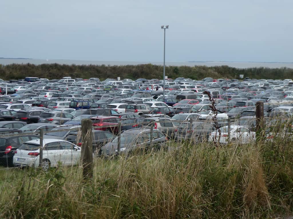 In Bensersiel staunen wir über die Tausende von Autos, die hier geparkt sind.