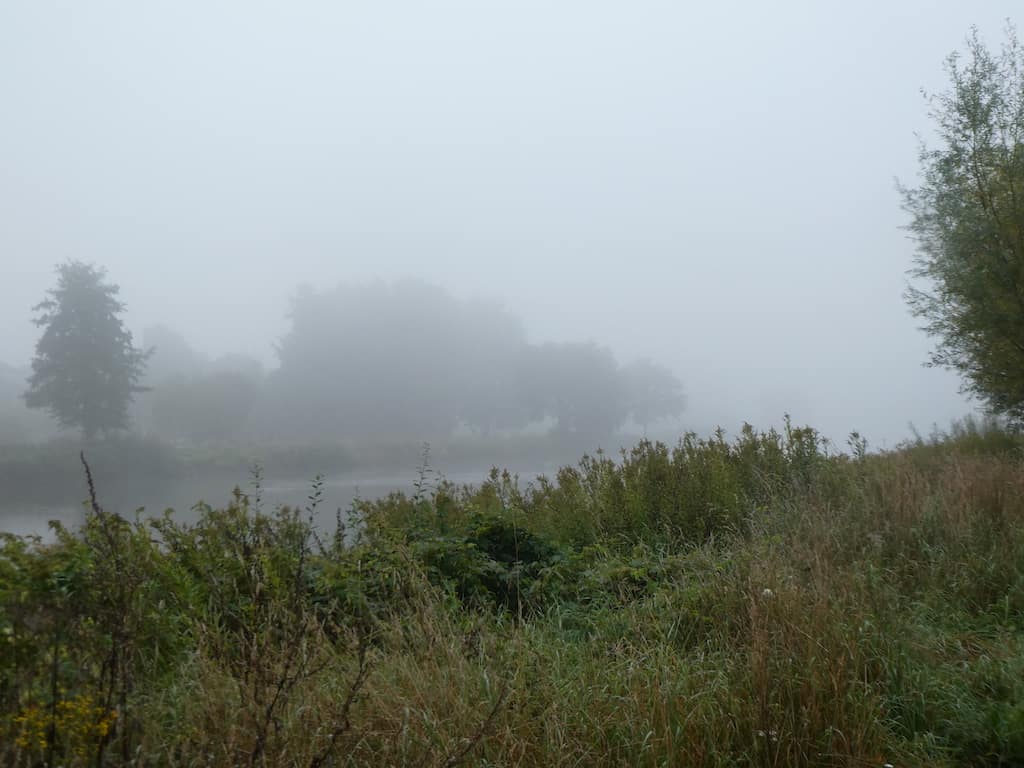 In Haren an der Ems ist morgens dichter Nebel. Bei unserer Abfahrt sehen wir schon etwas mehr von der Landschaft.