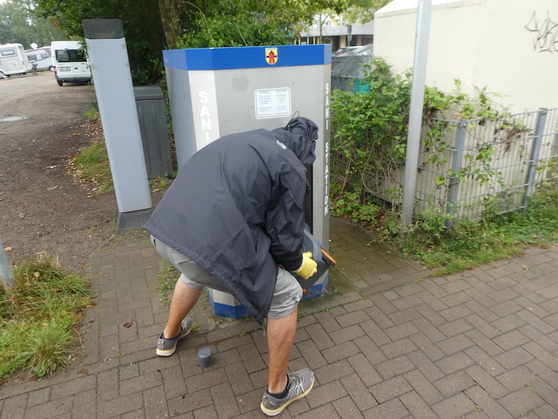 Dann noch Entsorgen und frisches Wasser nachfüllen und endlich kommen wir vom Platz.