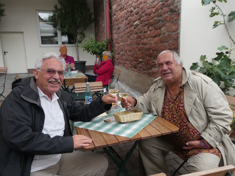 Kurz darauf muss Michael schon aufbrechen, um einen Jahrgangskollegen beim „Häcker“ zu treffen. Hier im Bild mit Gerhard. Es wurde ein feuchtfröhlicher Abend.
