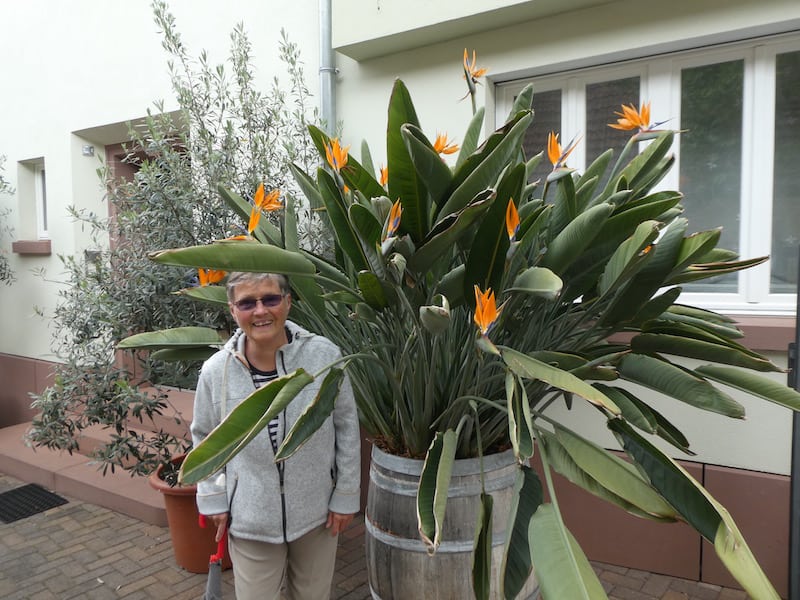 Hier steht eine riesengrosse Strelizie, wie wir sie noch nie gesehen haben.
