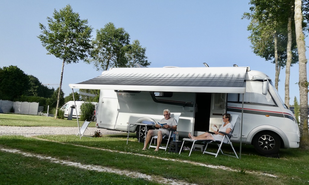 Nur im Schatten kann man es heute einigermassen aushalten. Schnell haben wir Kontakt zu Nachbarn, besonders zu Brigitte und Ludger, einem uns sympathischen Paar aus Recklinghausen.