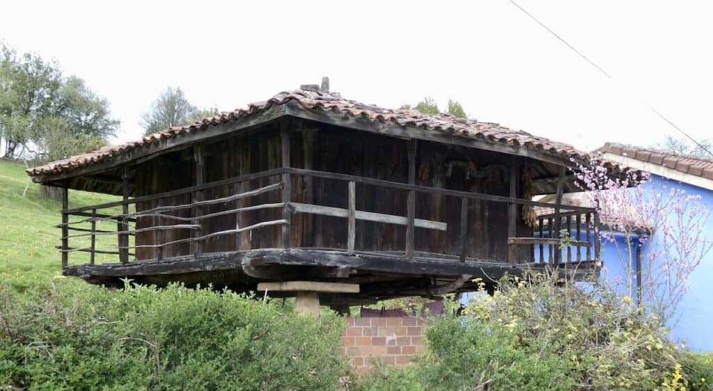 Wir brauchen eine Pause. So fahren wir mangels Raststätte von der Autobahn ab in ein Dorf. Endlich sehen wir die, für diese Gegend typischen, «Hórreos» auf Stützen gebauten Speicherbauten für Agrarprodukte.