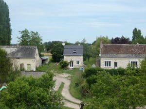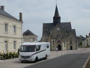 Vor der Kapelle St.-Martin in La Chapelle-sur-Loire. Links davon gab es beim Bäcker leckere Baguette sowie Kuchen für die Kaffeepause.