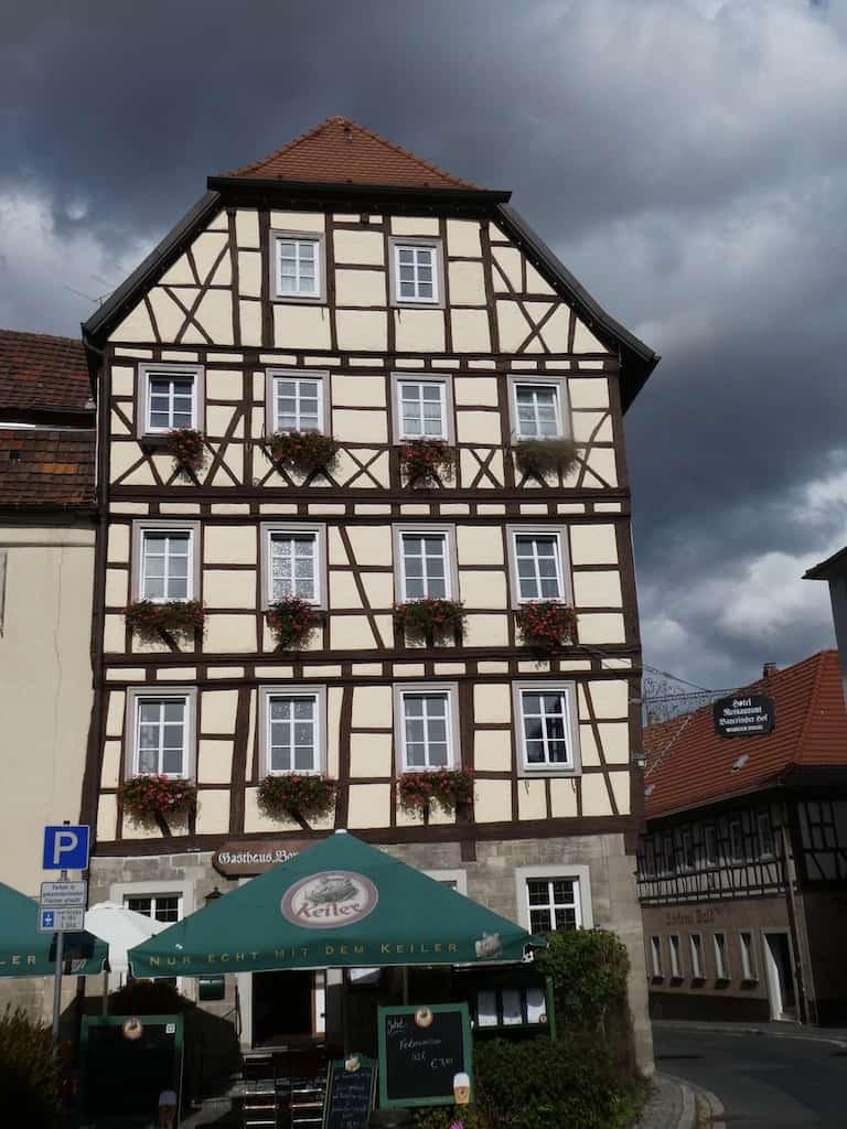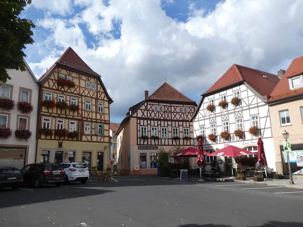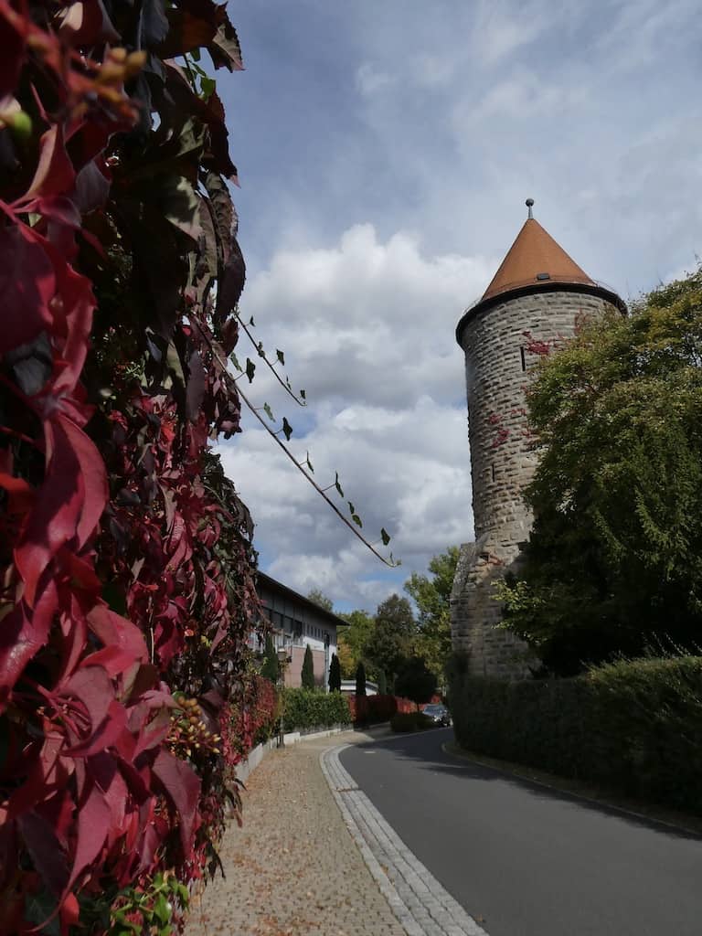 In Münnerstadt an der Lauer halten wir unsere Mittagspause. Gleich neben dem „Dicken Turm“ (von 1240) liegt ein Reisemobil Stellplatz.
