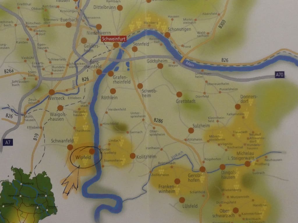 Es wird schon dunkel, als wir uns verabschieden. Zum Übernachten landen wir auf einem Stellplatz in Wipfeld am Main.