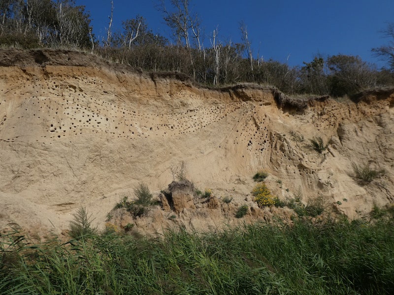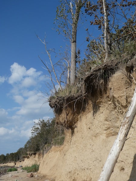Die Steilküste am Westufer wird durch Wind und Wetter stark abgetragen. Immer wieder kommt es zu Abbrüchen und Rutschen, hauptsächlich während der Winterstürme.