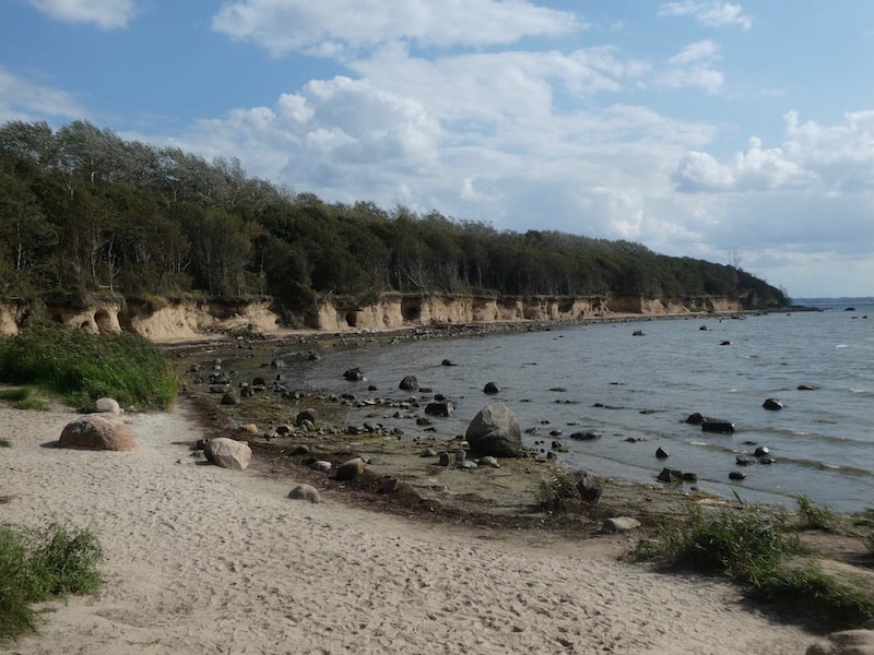 Am Fusse des Steilufers hat die Brandung Höhlen aus dem Mergelgestein gewaschen.