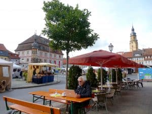 Zurück auf dem Stellplatz, das übliche Prozedere: Entsorgen, Frischwasser bunkern, abmelden und bezahlen. Aufgrund unserer Stellplatz-App haben wir einen schönen Platz in Hassfurt am Main ins Auge gefasst.