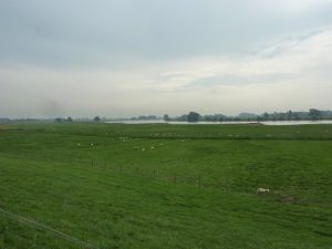 Die grossen Überschwemmungsgebiete als Rückhalteflächen vor dem Deich werden zum Maisanbau und als Weideland genutzt.