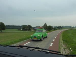 Wieder sehr schmal, wobei dieser Deux Chevaux wohl eher Angst vor unserem Gefährt hat.