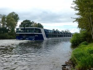 Wieder kam ein Flusskreuzfahrtschiff vorbei. Wieder eines mit Heimathafen Basel. Aber pfui, die Schweizer Nationale fehlte. Das gibt bei uns Abzug in der Bewertung!