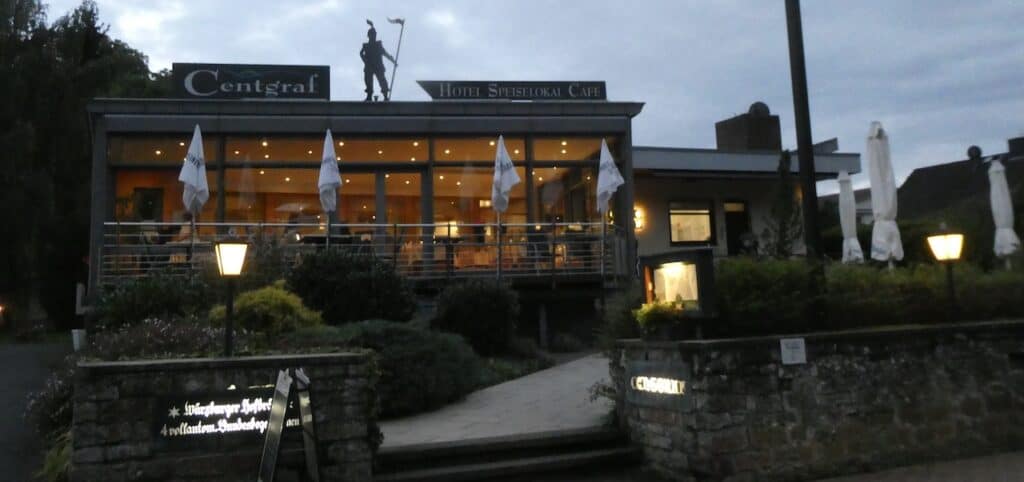 Zum Abendessen gehen wir beide wieder ins Restaurant Centgraf. Mit Regina und Albrecht, den Senior-Wirtsleuten, verbindet uns eine alte Freundschaft. Und gegessen haben wir auch wieder vorzüglich. Allerdings: noch so ein paar Tage der Völlerei und Michael braucht grössere Hemden.