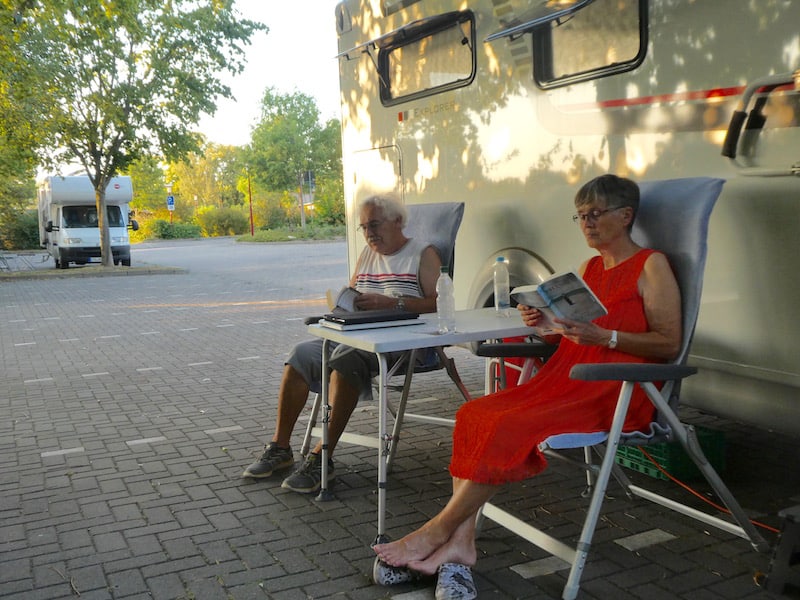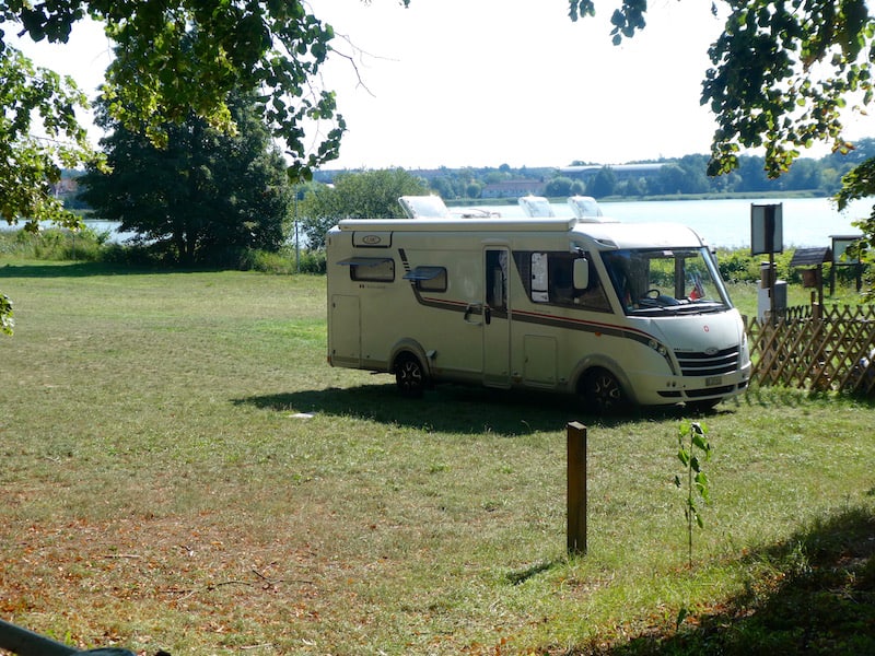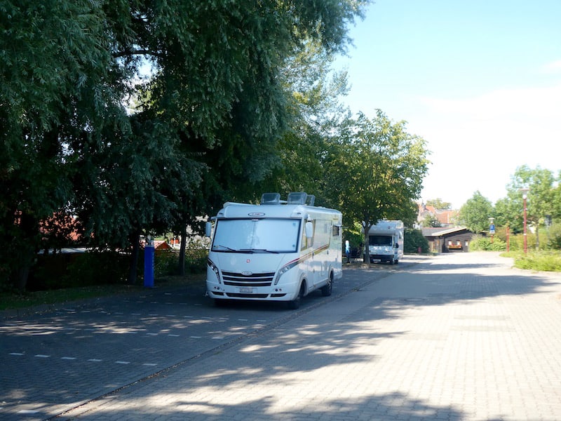 Der Stellplatz war früher ein normaler Parkplatz. Jetzt ist er mit Stromsäulen ausgestattet. Er liegt auch sehr nahe beim Zentrum.