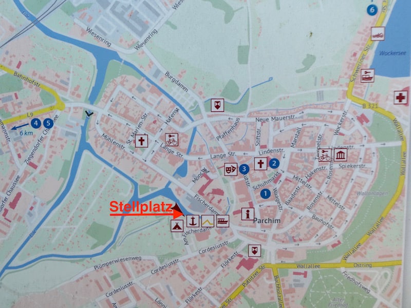 Als es nicht mehr ganz so heiss ist, raffen wir uns zu einem ersten Spaziergang in die Stadt auf. Parchim hat schon um 1200 die Stadtrechte erhalten. Heute ist sie eine Kreisstadt mit 18’000 Einwohnern.