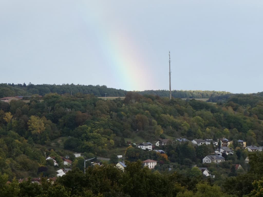 Wenn wir bisher holprige Nebenstrasse fahren, so toppen wir dies heute mit einer Fahrt über einen «Gehweg». Ein Einheimischer gibt uns diesen Tipp, damit wir nicht eine viel längere Umleitung fahren müssen. Dabei sehen wir auch diesen Regenbogen.