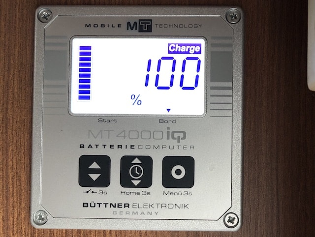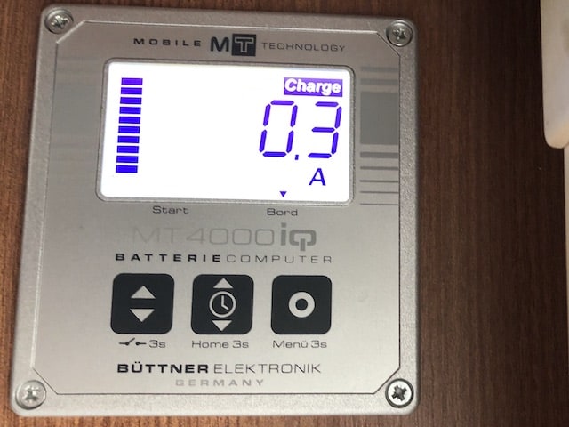 Fazit nach bald 3 Jahren: Alles super, alles bestens! – Wir müssen nur noch selten an eine Stromsäule. – Auch wenn die Sonne mehrere Tage nicht scheint, so kommen wir strommässig nicht in Bedrängnis. – Noch nie fiel der Ladezustand unter 50 %. – Unabhängig vom Wetter, sobald wir fahren sind die Batterien schon nach etwa 2 Stunden von der Lichtmaschine wieder nachgeladen. – Wir sind bis jetzt von dieser Technik total begeistert und hoffen, dass die Freude noch lange anhält.