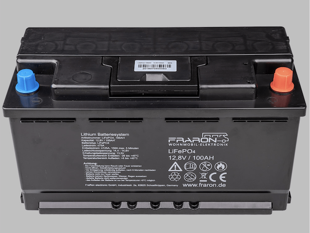Nach einigen Recherchen landeten wir bei der Firma FRARON in Schöllkrippen, Deutschland, deren Inhaber selbst ein eingefleischter Reisemobilist ist. Das Beratungsgespräch führte schnell zum Kauf von zwei 100Ah Lithium Batterien 12V / 1,28KWh, LiFePO4 mit integriertem Batteriemanagement.