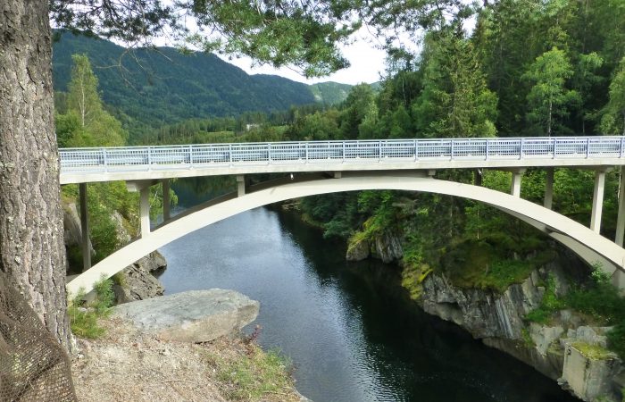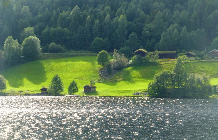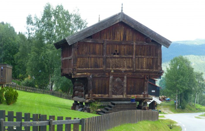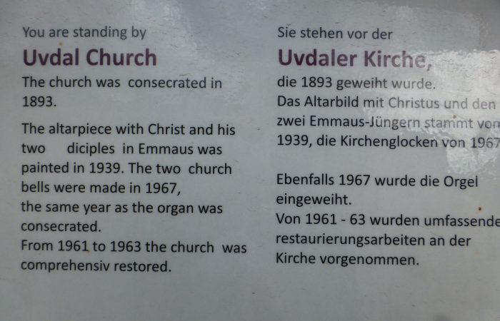 aber auch weiter talwärts wieder an kleinen Höfen mit Landwirtschaft. Wir hielten bei der Udval Kirche. Dort war ein Laden, wo ausser norwegischen Strick- und Webwaren auch