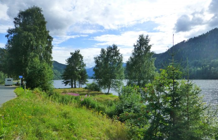 So suchten wir einen Standplatz und stehen nun auf einem CP, gemäss Navi Nähe Flesberg, etwa 35 km vor Kongsberg.