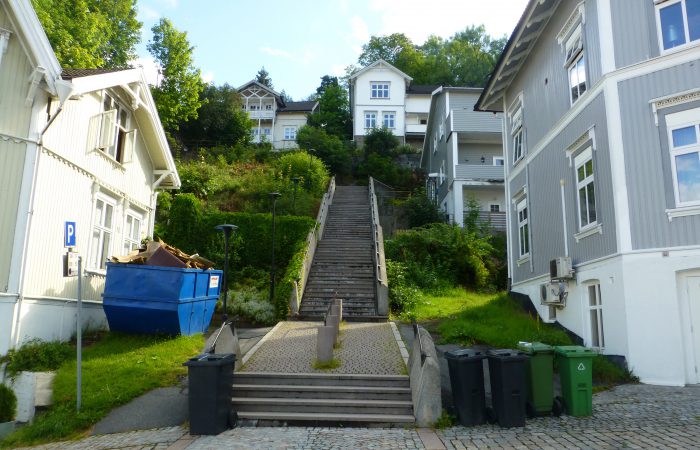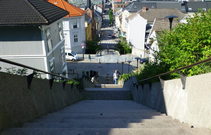 hinunter. Die alten Häuser liegen an einem Hang. Der Park mit den historischen Häusern lag dann noch höher, über viele Treppen erreichbar. Die