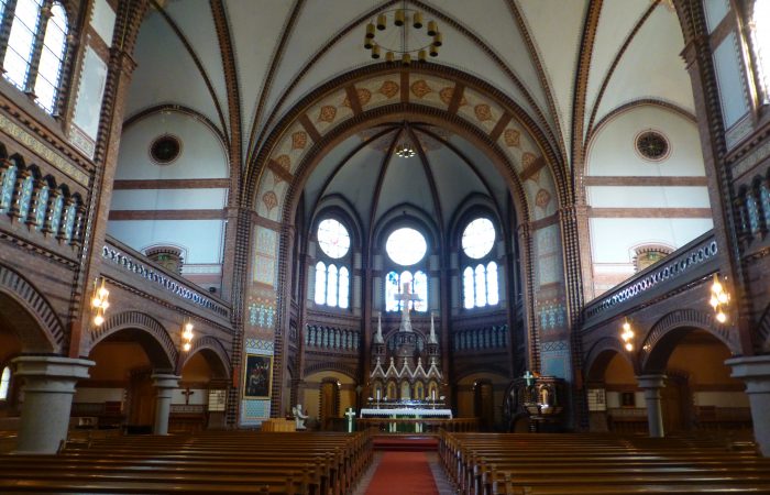 Ort. Die 1894 erbaute Kirche hat elegante, 68 m hohe Türme und ein monumentales Inneres mit 1200 Sitzplätzen. Der Schriftsteller und Dramaturg Henrik