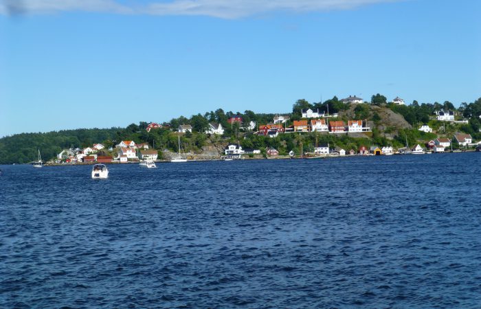 Heute Morgen war wieder schönstes Wetter. Der Fjord lag spiegelglatt vor uns. Im Touristenbüro in Skien erhielten wir