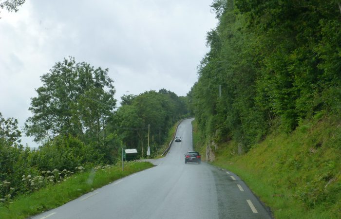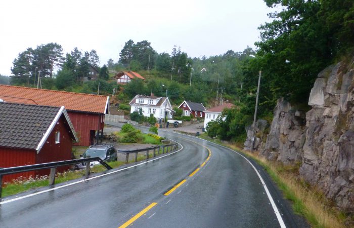 Der Weg dorthin ist eng und wild. Teils am Fjord dicht an den Felsen vorbei, teils passähnlich über Höhenzüge. Gegenverkehr kreuzt