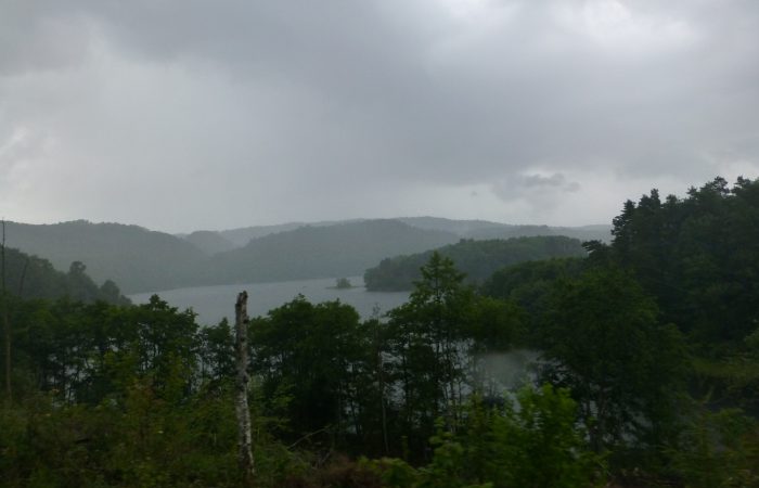 voran. Doch auch da ist es kurvenreich, geht es auf und ab und hat es viele Tunnel. Immer wieder kommt man an Seen vorbei, aber der Regen trübte die Aussicht.