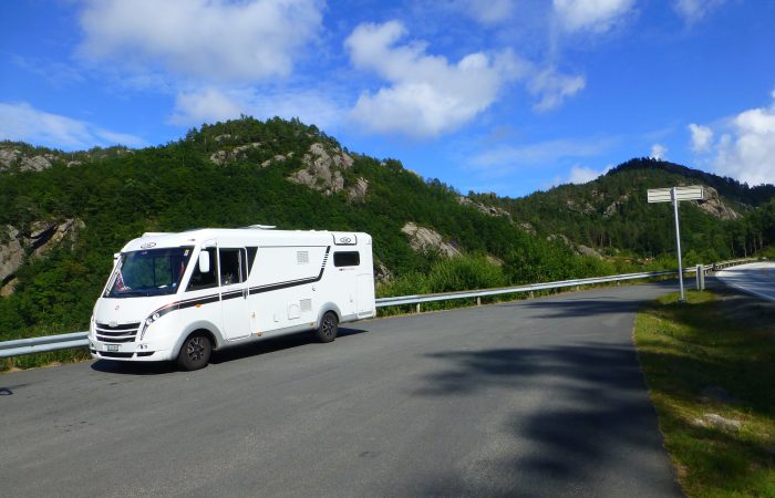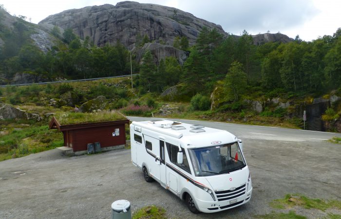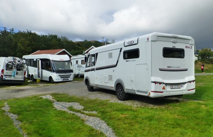 Der Spieler stand hoch oben auf einem Felsen. Was für ein bewegend schönes Erlebnis! Auf dem Standplatz in Egersund kamen wir spät an. In der Nacht setzte schon wieder Regen ein.
