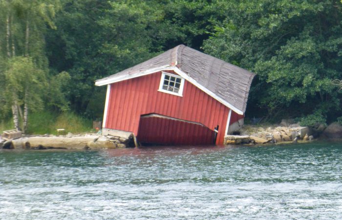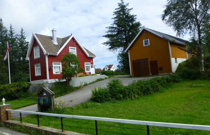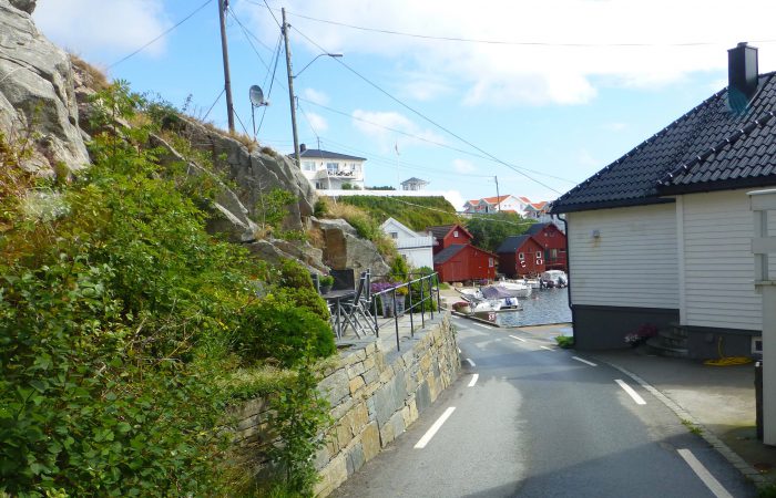 wunderbare wilde Landschaft, was jedoch viel Zeit beanspruchte. Unten an Fjorden vorbei, wo schon mal eine Hütte im Wasser hängt, dann wieder in der Höhe an