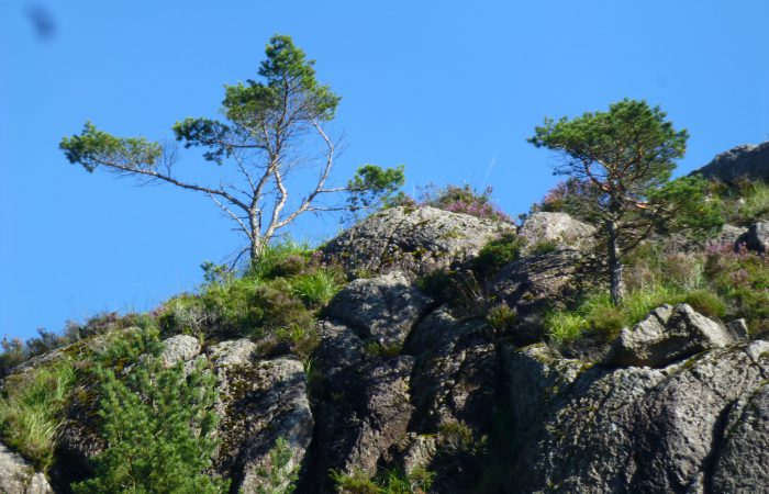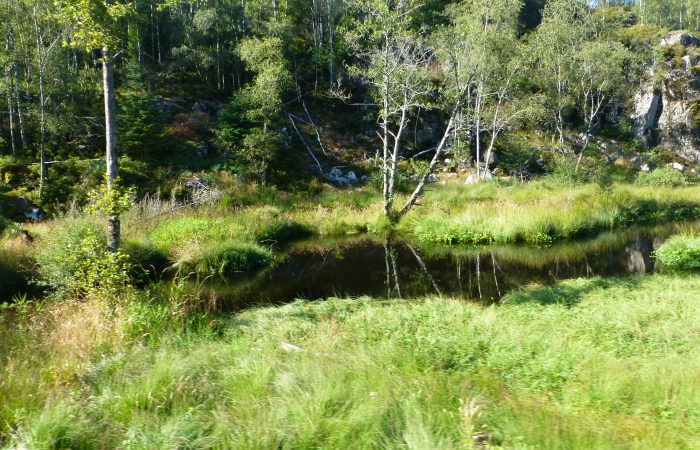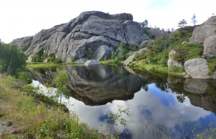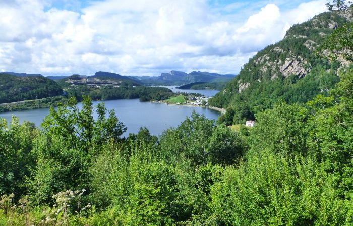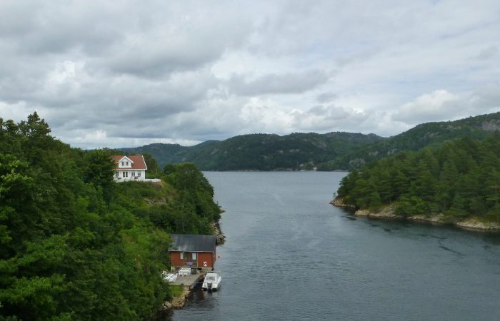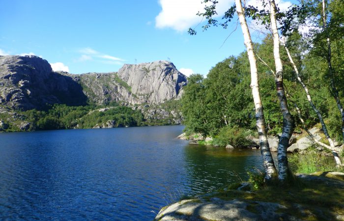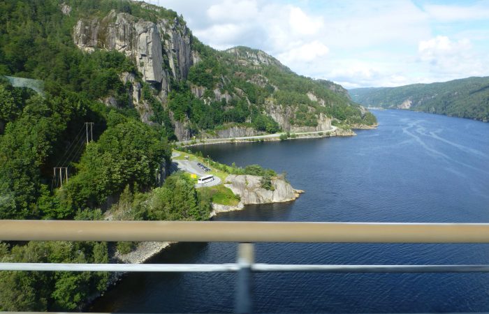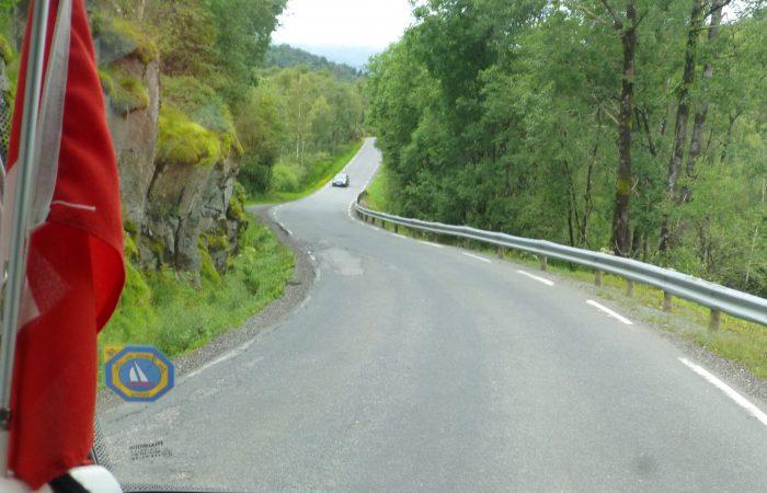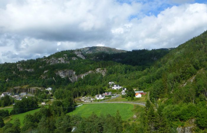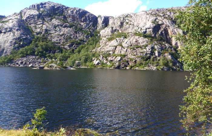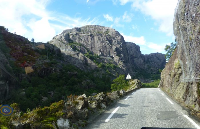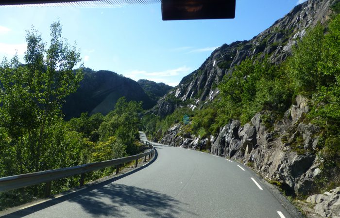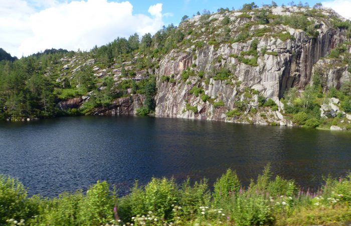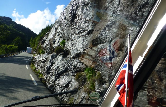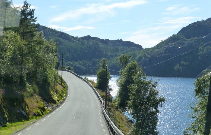 Bergbächen und Seen entlang. Auf einer Passhöhe hielten wir bei der Denkstätte aus dem 2. Weltkrieg vom „Alkmark-Drama im Jøssingfjord“ an.