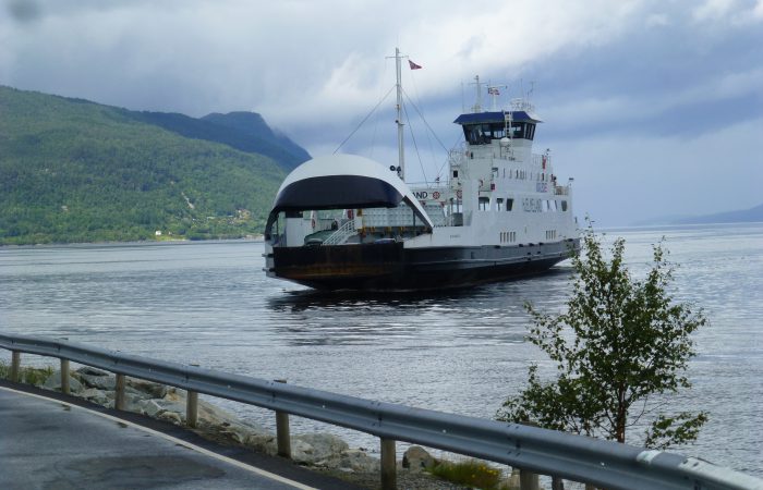 Hardangerfjord, soweit wir eben kommen. Es ging wieder auf und ab, dann mit der Fähre über den Jøsenfjord. Die 13 führt kurvenreich und durch viele Tunnel in luftiger Höhe direkt am Fjord entlang.
