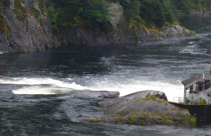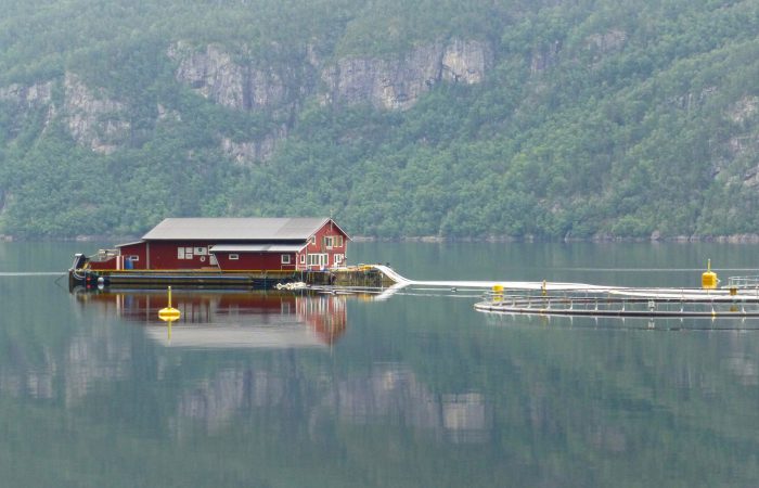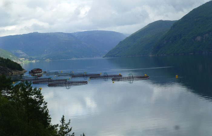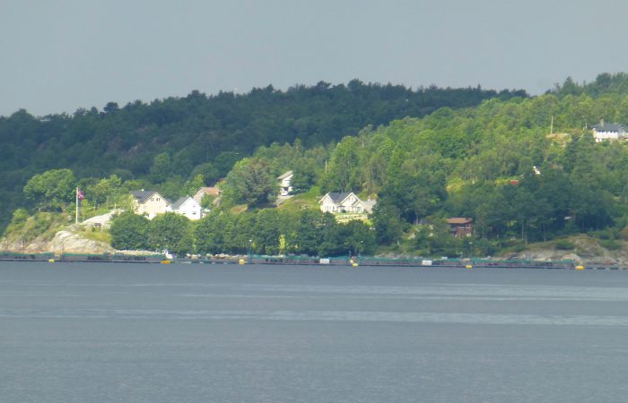 Wir sahen von oben auf eine schwimmende Fischzucht. Ob hier wohl der norwegische Wildlachs herkommt?