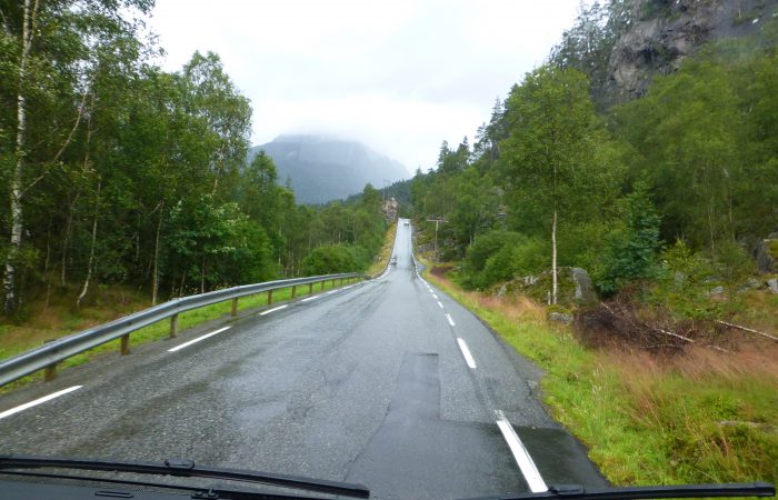 Eigentlich wollten wir heute auf den Berg „Preikestolen“ (Predigerstuhl). Von dort hätte man eine schöne Aussicht auf den 600 Meter tiefer