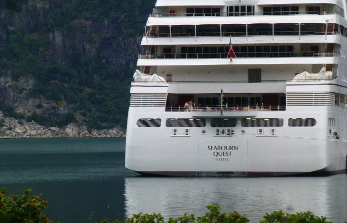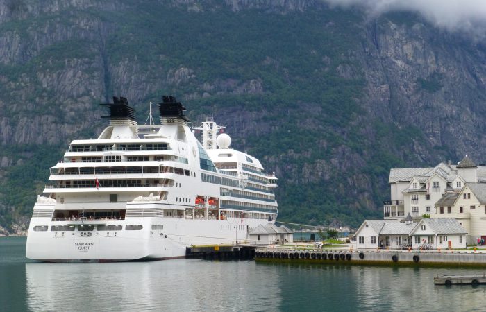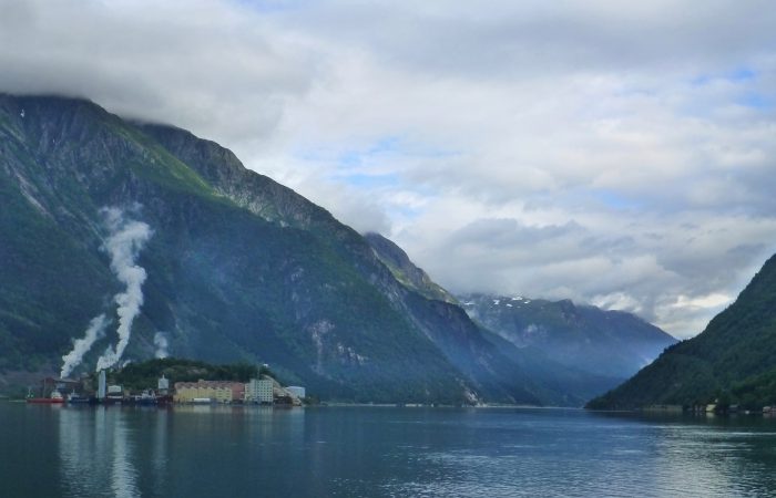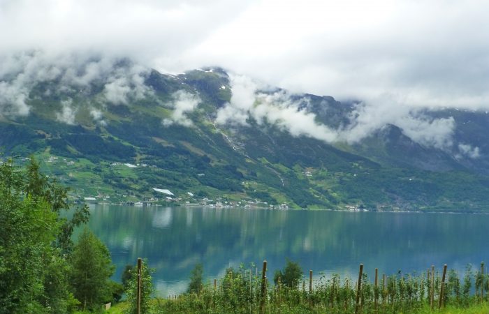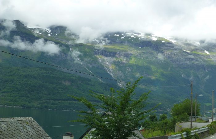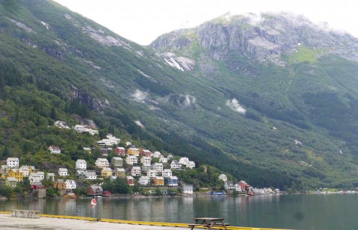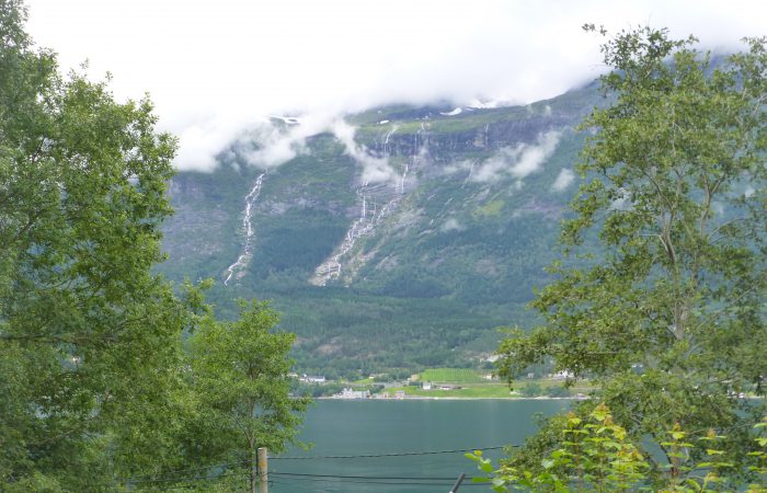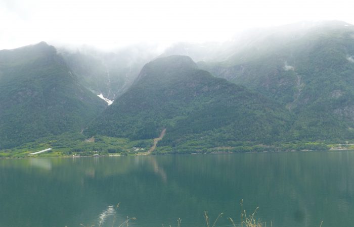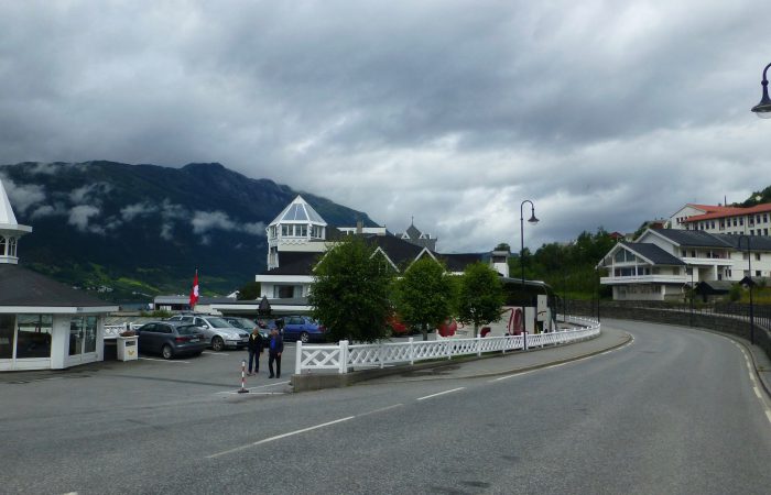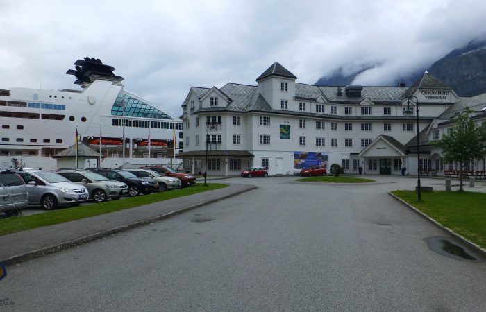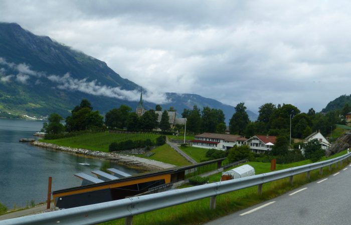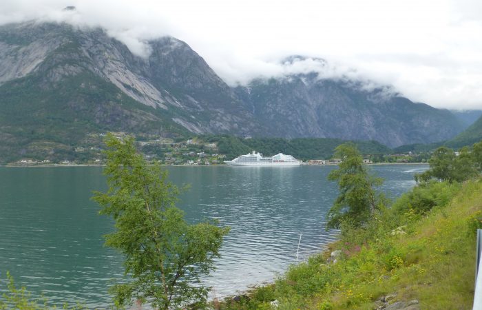 wurde. Unser Navi hatte uns richtig führen wollen, aber wir hörten nicht auf ihn. Also hiess es nach dem Tunnel wenden, und das ganze wieder zurück zu fahren. Dann kamen wir am gleichnamigen Fjord entlang nach Eidfjord. Der Hardangerfjord, eine grosse Touristenattraktion, endet im Eidfjord und hier, ganz am Ende, legen die grossen Kreuzfahrtschiffe an.