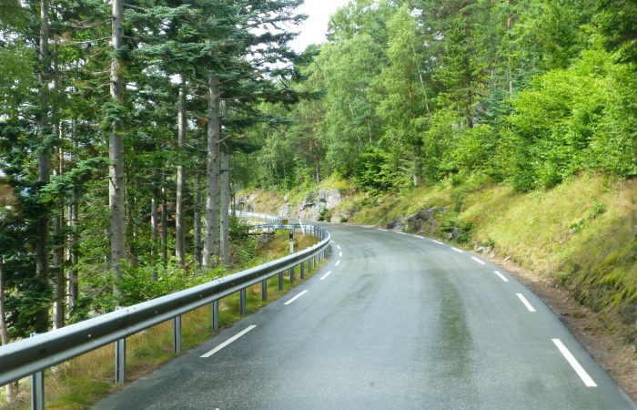 Kreisverkehr im Berginnern. Hier hätten wir auf die Strasse 7 Richtung Oslo abfahren sollen. So aber führte uns die Strasse 13 über eine tolle neue Brücke und dann