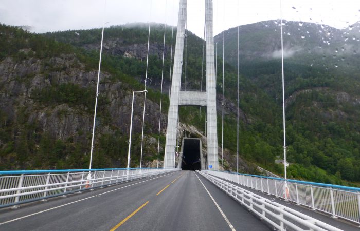 durch einen 8 km langen Tunnel. Diese Brücke ist so neu, dass sie in unserer Hallwag-Strassenkarte von 2015 noch nicht berücksichtigt