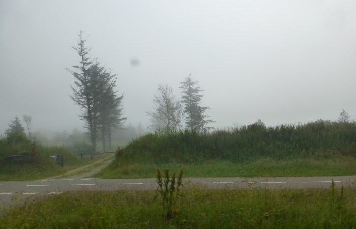 Morgens war es wieder trocken, ja, die Sonne drückte sogar zaghaft durch. Als wir diesen schön gelegenen Standplatz in Kvissel verliessen,