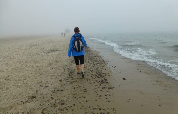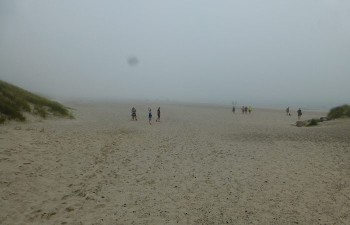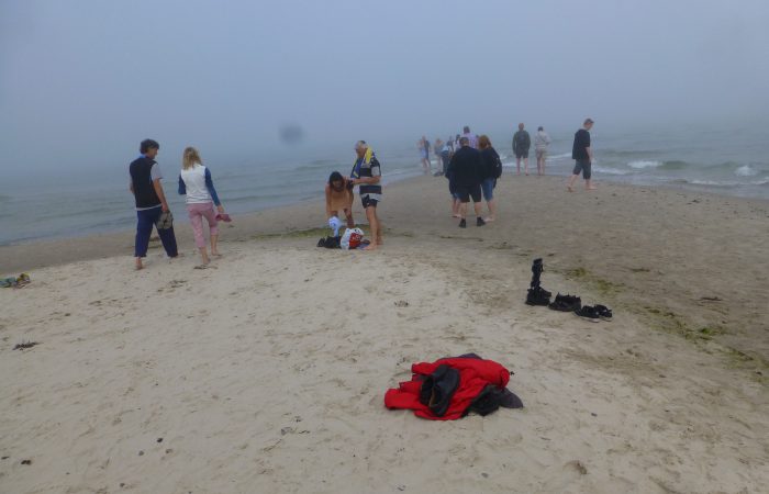 treffen. Dort erwartete uns eine geheimnisvolle Stimmung. Es war leicht neblig, aber man konnte auch die Sonne spüren. Der Sand war warm und trocken, aber unsere
