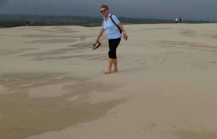 den Wanderdünen, die nur etwa 10 Kilometer weiter zu finden sind. Das war besonders eindrücklich. Ein starker Wind blies uns entgegen und ständig wechselte