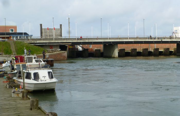 Schleuse zwischen Ringkøbing Fjord und dem Meer an. Hier gibt es auch einen grossen Fischereihafen. Renate machte